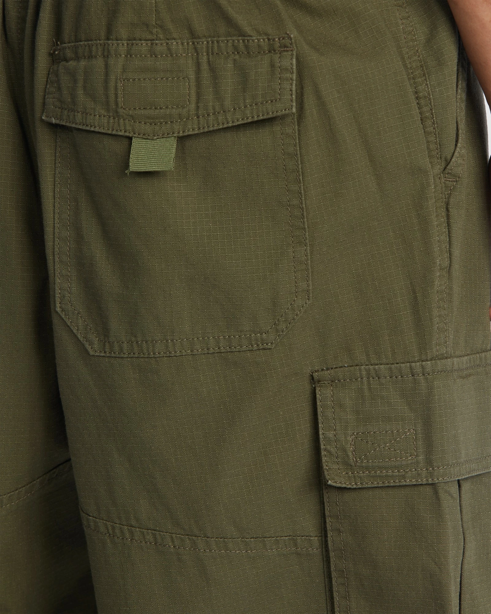 - Two slash pockets, cargo pockets with hook and loop fastener closure, back left pocket, back right patch pocket