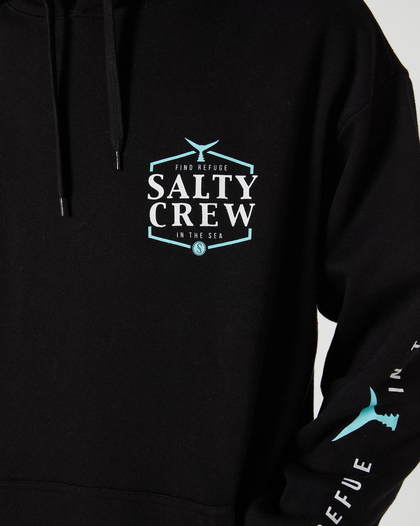 - Hooded neckline with drawcord