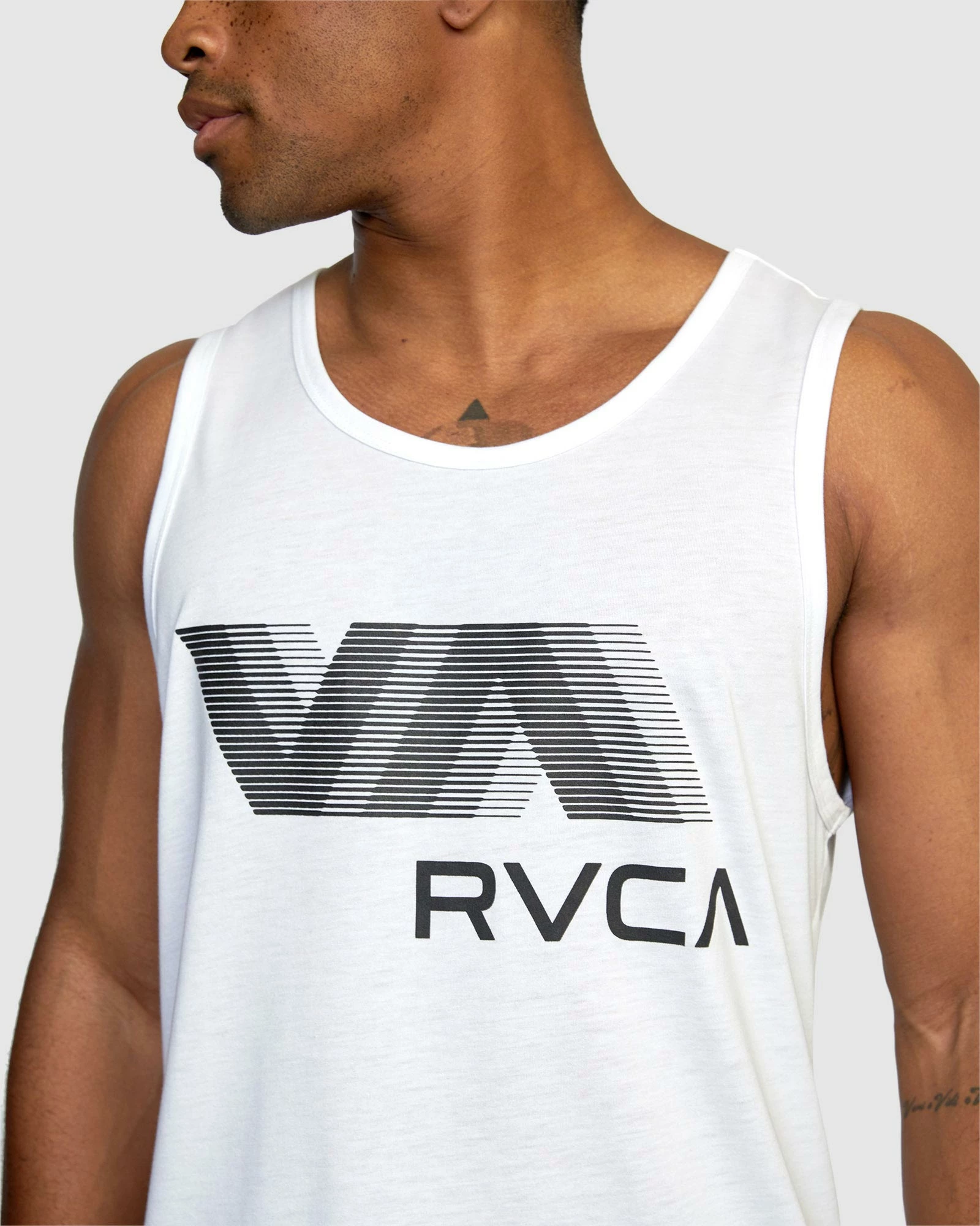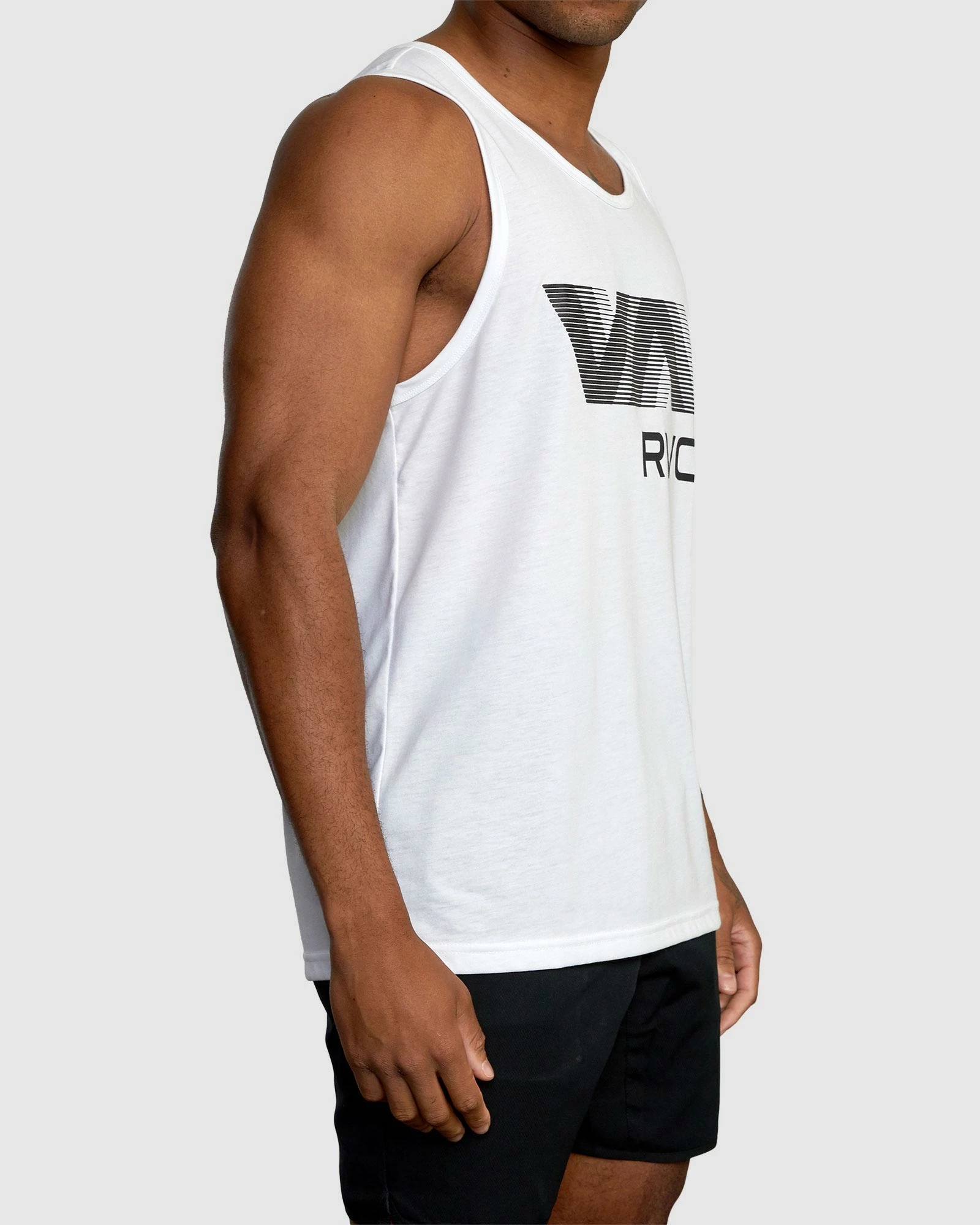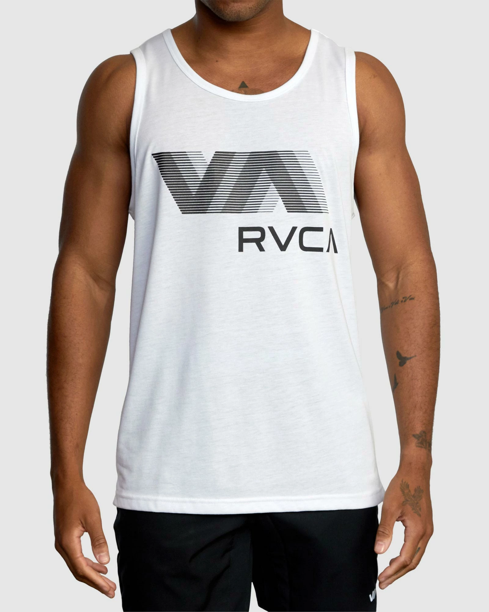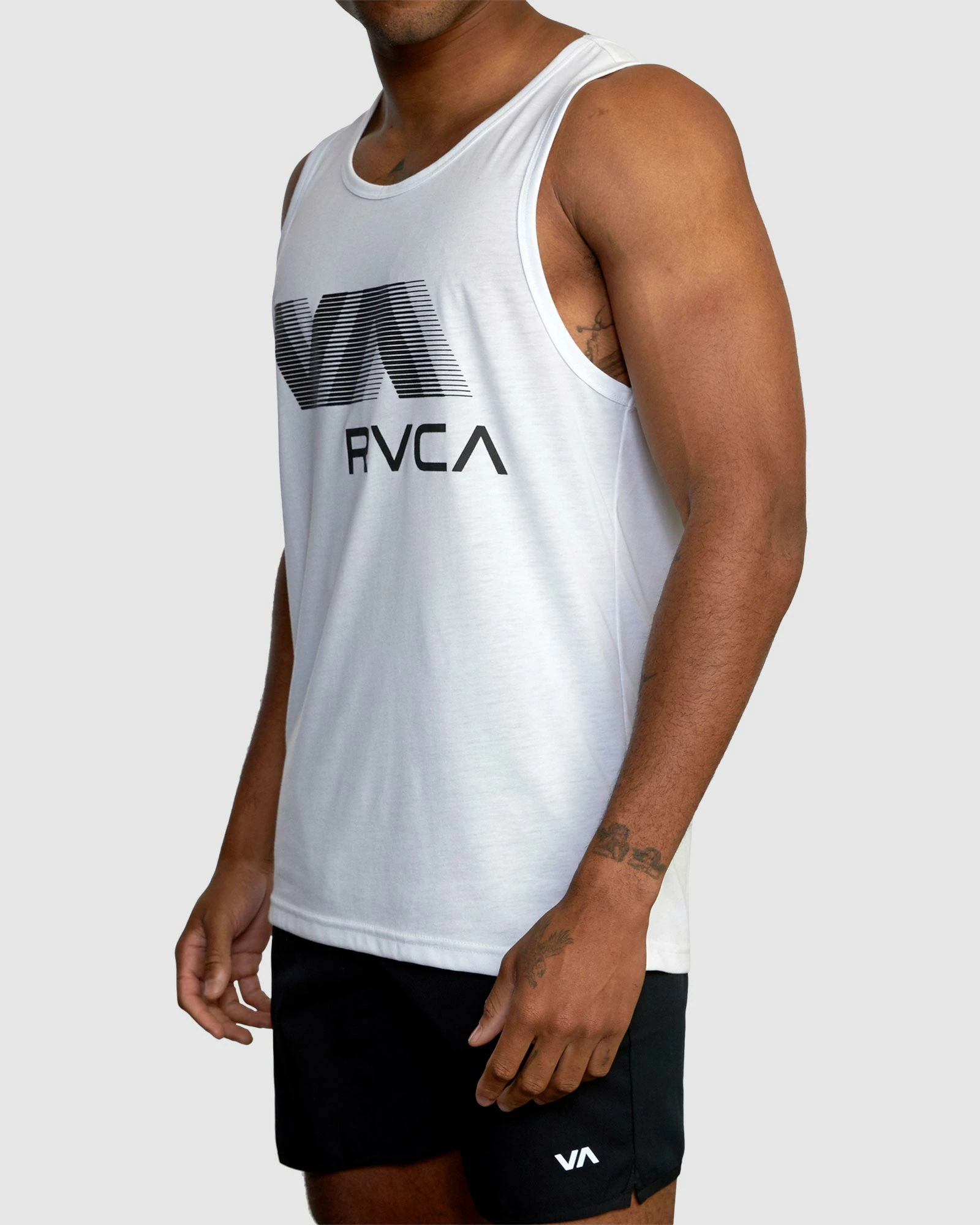 The VA RVCA Blur Tank Top features moisture-wicking, breathable fabrics designed to enhance any workout. This men”s scoop neck tank is made from jersey fabric treated with DriRelease®, to keep you dry and cool all day. Featuring custom VA Sport Collection graphics at the front and back.